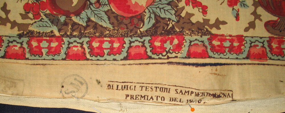 Il mezzaro è una produzione della manifattura Luigi Testori di Genova Sampierdarena, come attesta il marchio di fabbrica impresso su un