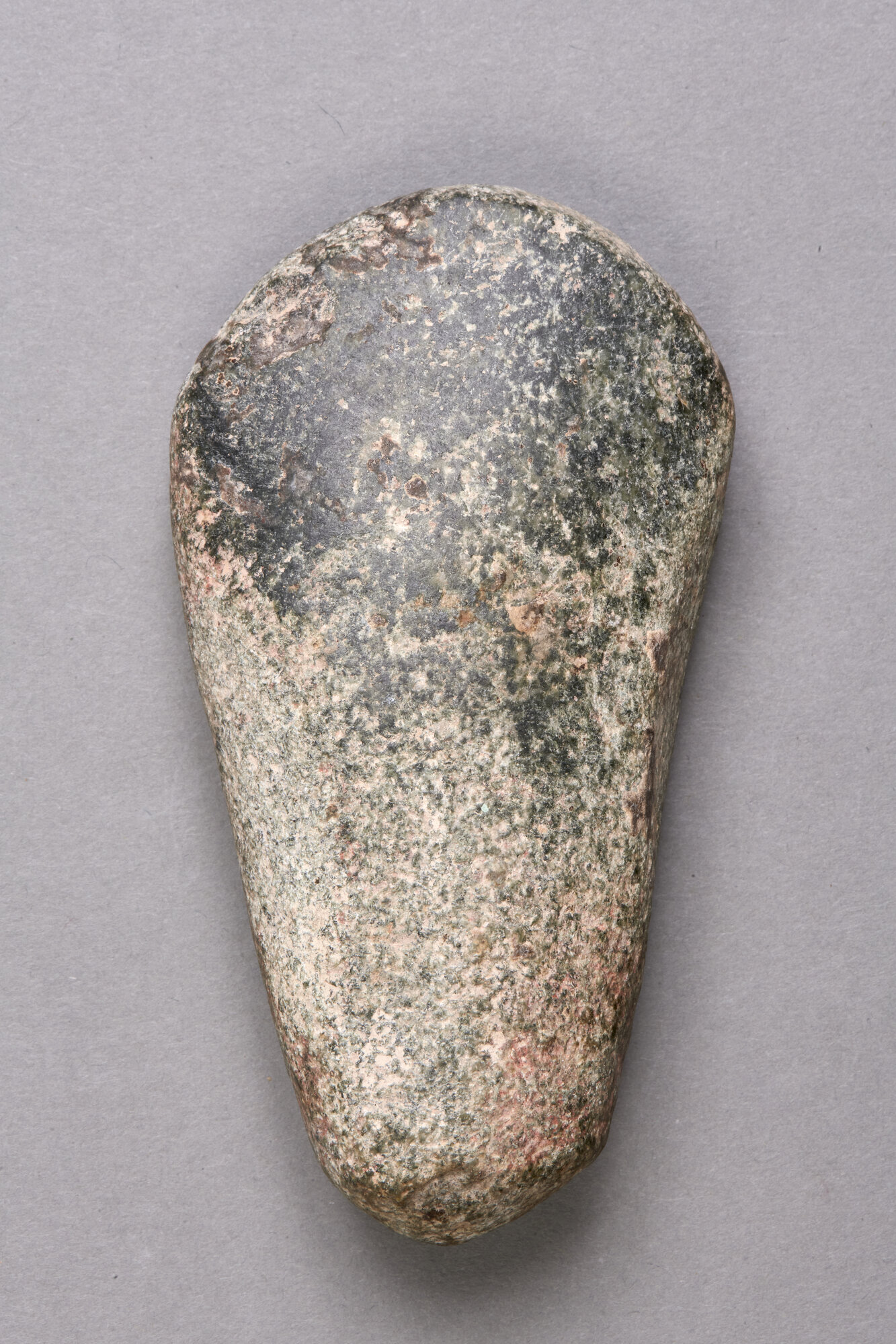 Martello su riuso di ascia/accetta. Tagliente, tallone e margini con faccette e superfici di lavorazione. Superfici levigate e martellinate.