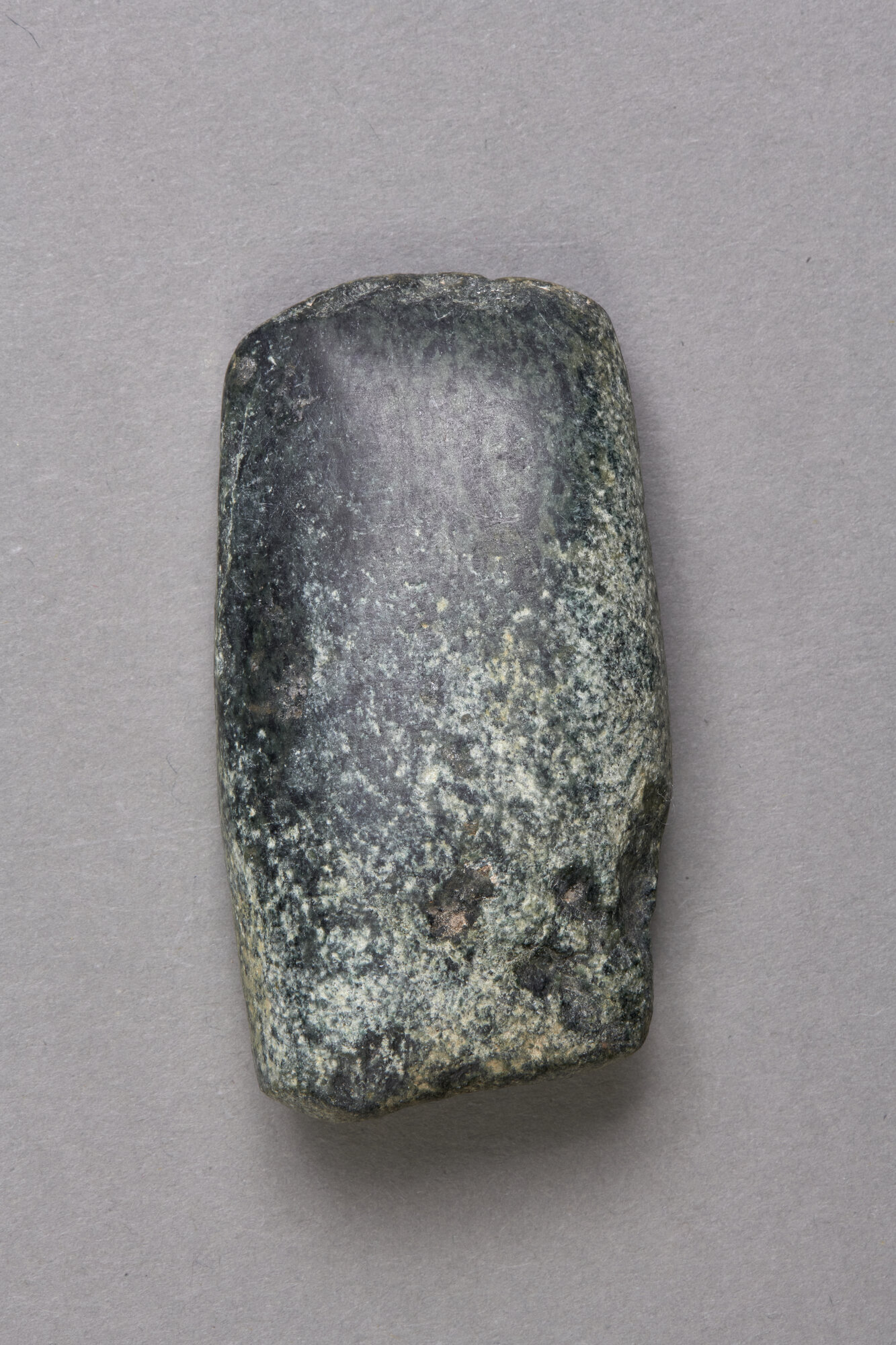 Martello su riuso di ascia/accetta frammentaria. Tagliente, tallone, margini con superfici di lavorazione. Superfici levigate e martellinate.