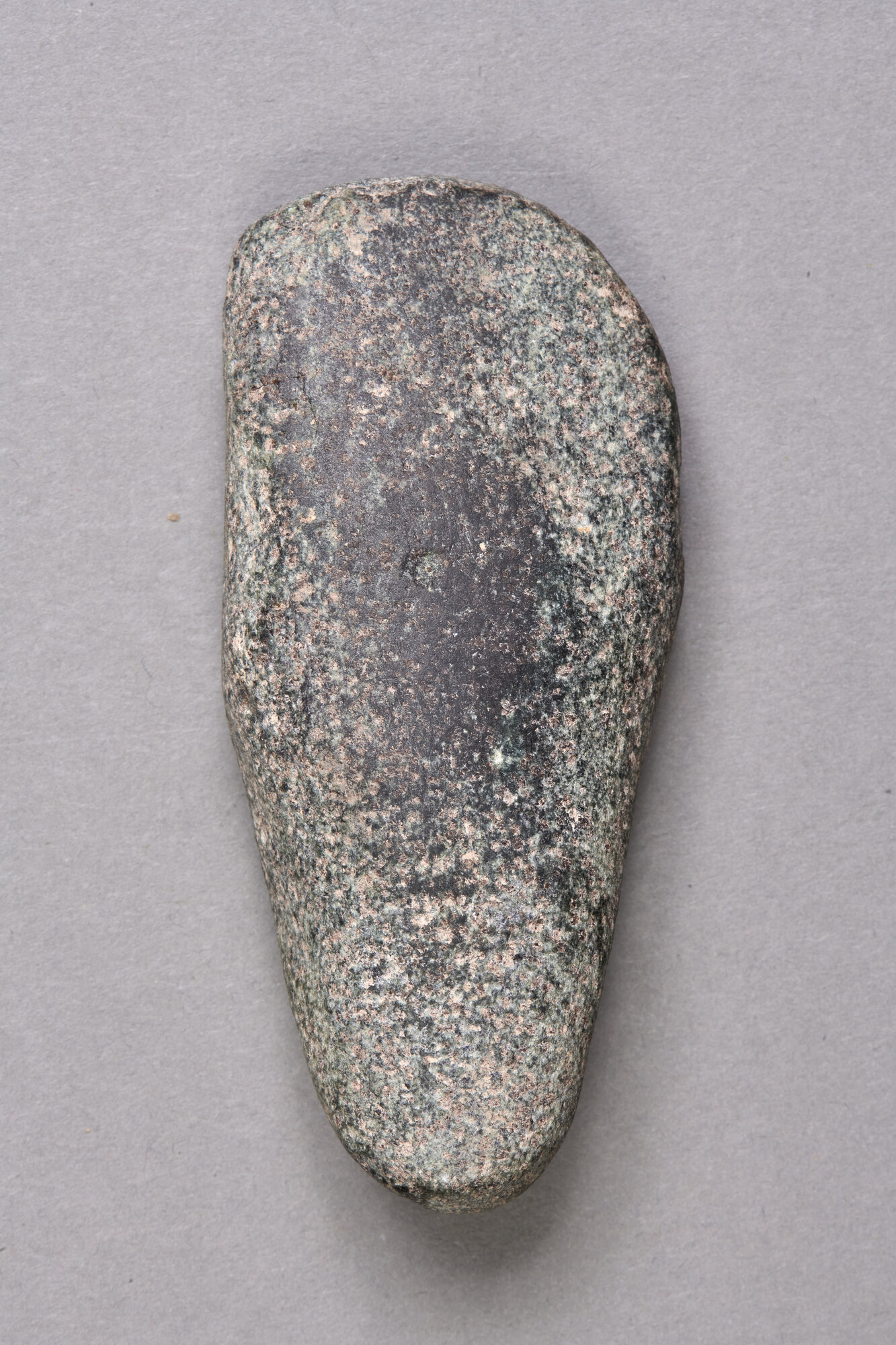 Martello su riuso di ascia/accetta, Tagliente, tallone, margini e facce con faccette e superfici di lavorazione. Superfici levigate e martellinate.